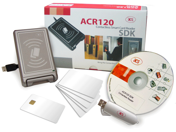 Kompletní vývojový kit pro programátory a vývojáře v oblasti bezkontaktních čipových karet. Obsahuje bezkontaktní čtečky čipových karet ACR120